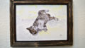 スケッチをパソコンアプリPhotoshopで彩色し水彩紙にプリント後アクリル絵の具で着彩しました。フレームは作品のイメージ合うようにステイン加工を施しました。