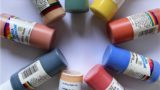 額装のベースは飾る場所に応じて入れ替えると便利かなと思い、シンプルな白デニム、ポップな黄色柄、赤色着物の和柄、青デニムと4パターン作りました。