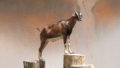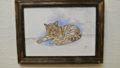 スケッチをパソコンアプリPhotoshopで彩色し水彩紙にプリント後アクリル絵の具で着彩しました。フレームは作品のイメージ合うようにステイン加工を施しました。