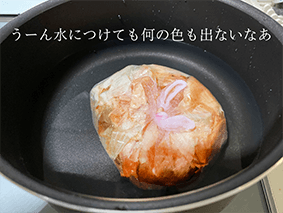 ③染める方は20分程度(AやBをそれぞれ別に材料がひたひたくらいの水に入れ)コトコト煮ます。