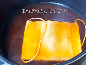 ④ ③の素材の入ったネットを取り出し煮沸の終わったマスクを入れ20分位、沸騰しないくらいの弱火で煮ます。
