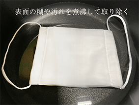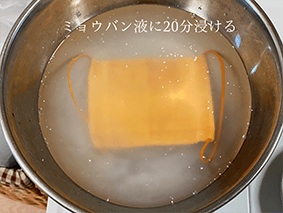 ②染める前のマスクを10分程度煮沸。終わったら軽く絞ります。