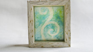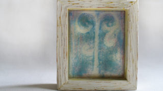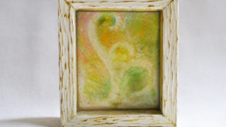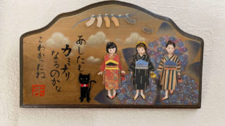 遅咲きの紫陽花が残る初夏、夕暮れ時の子供たちをテーマにしたトールペイントイラストに既成の3Dクラフトデコレーションシールを部分的に接着することで質感の違いが楽しい仕上がりの作品になりました。